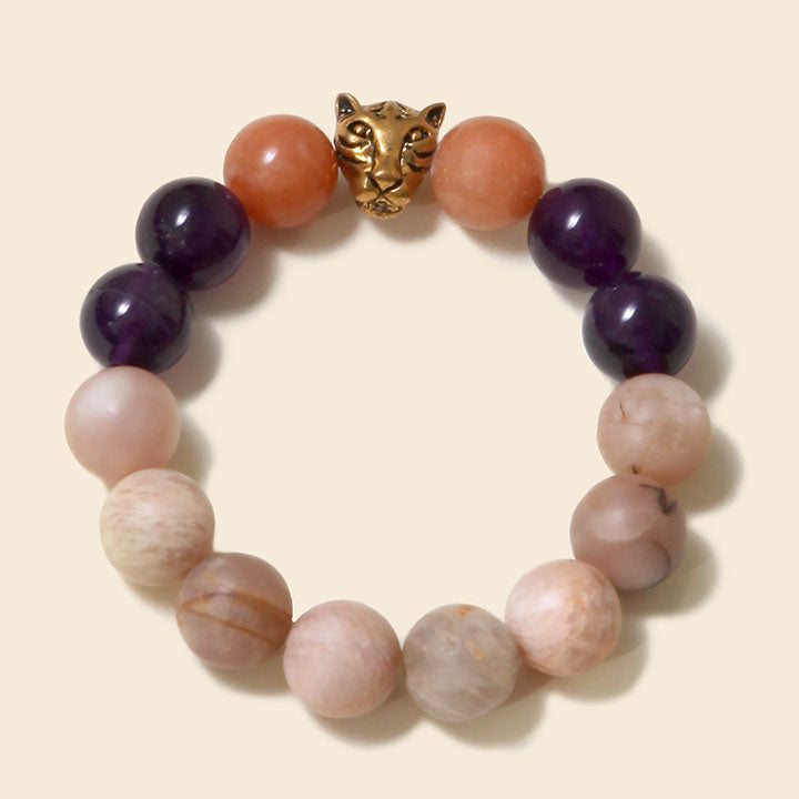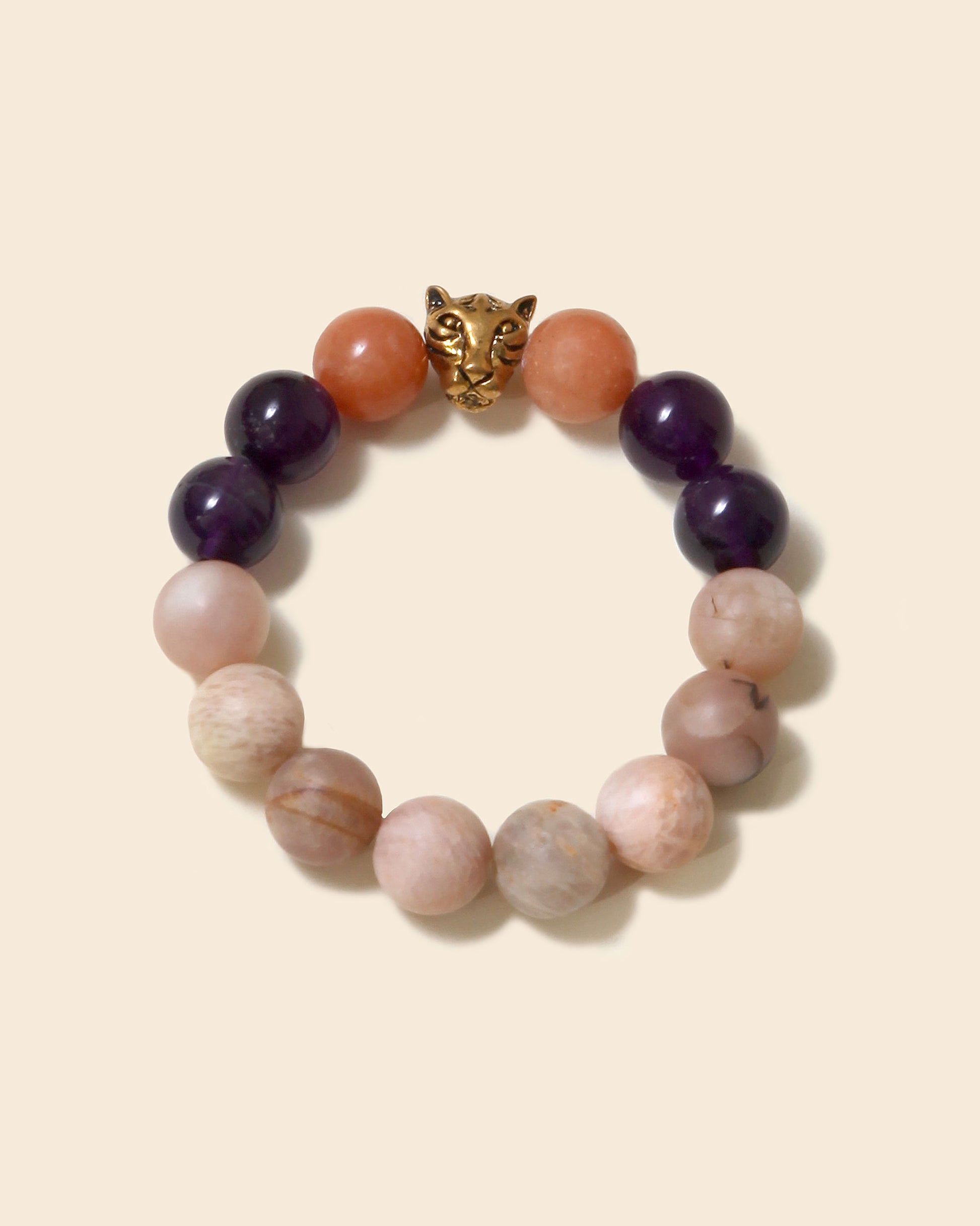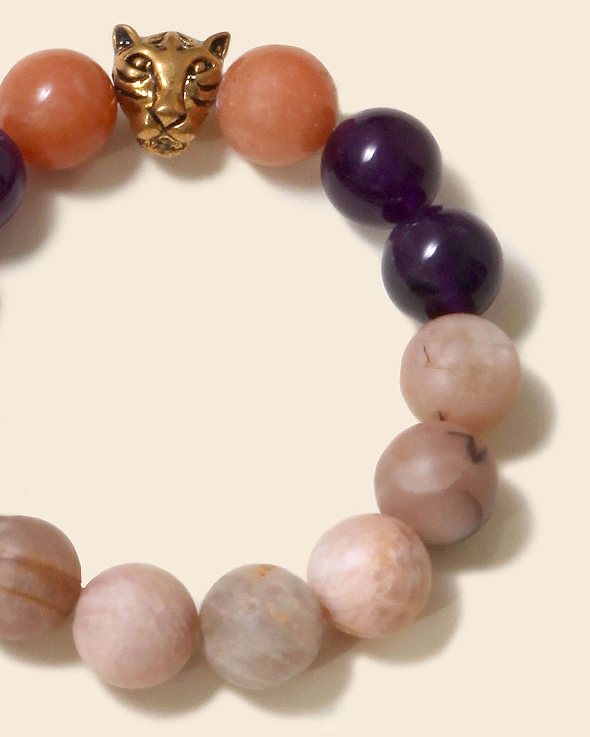 Amethyst ,Unpolished moon stone ,Yellow Jade, Old Gold pewter Panther.