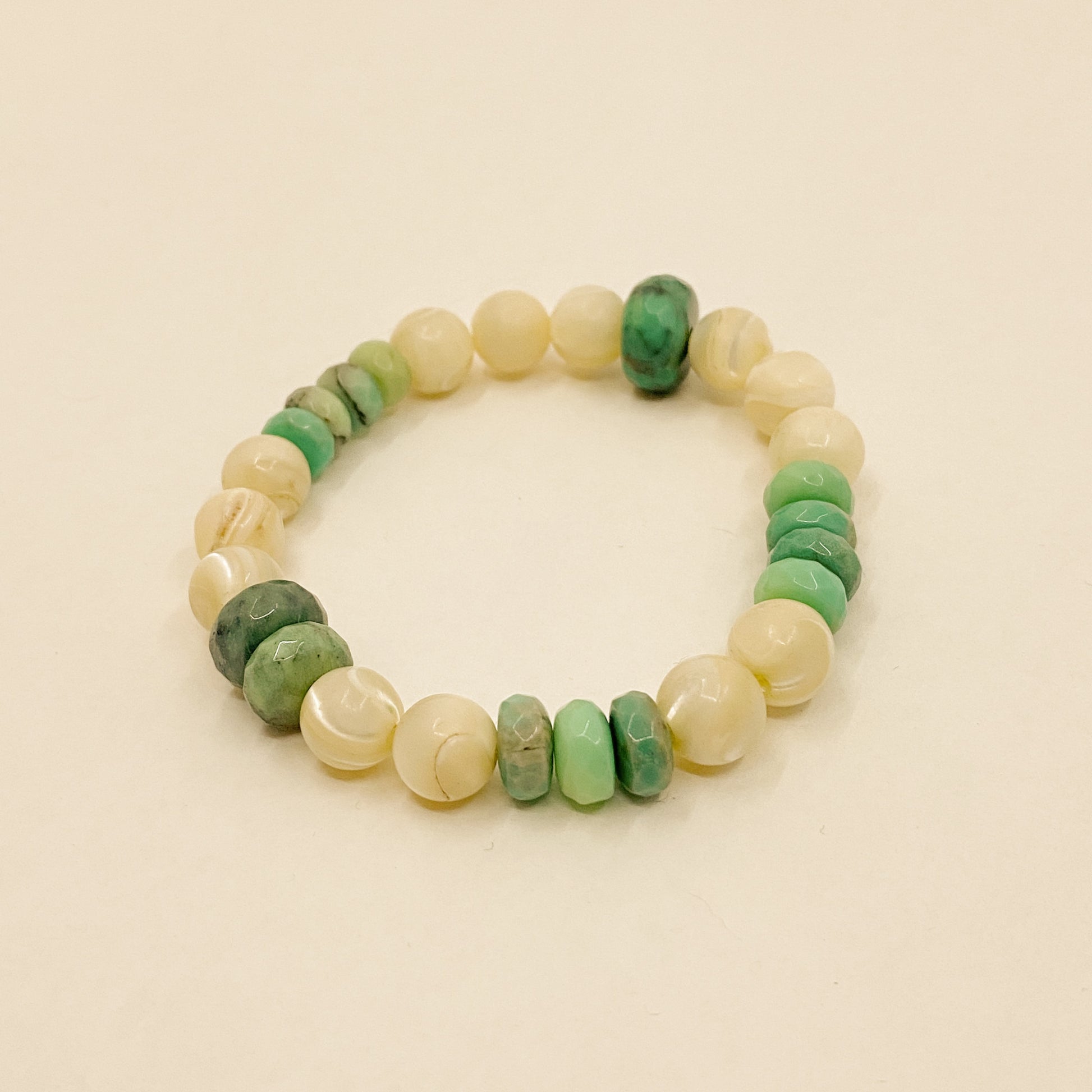 Antique Mother Pearl and Green Rondelle Opals.