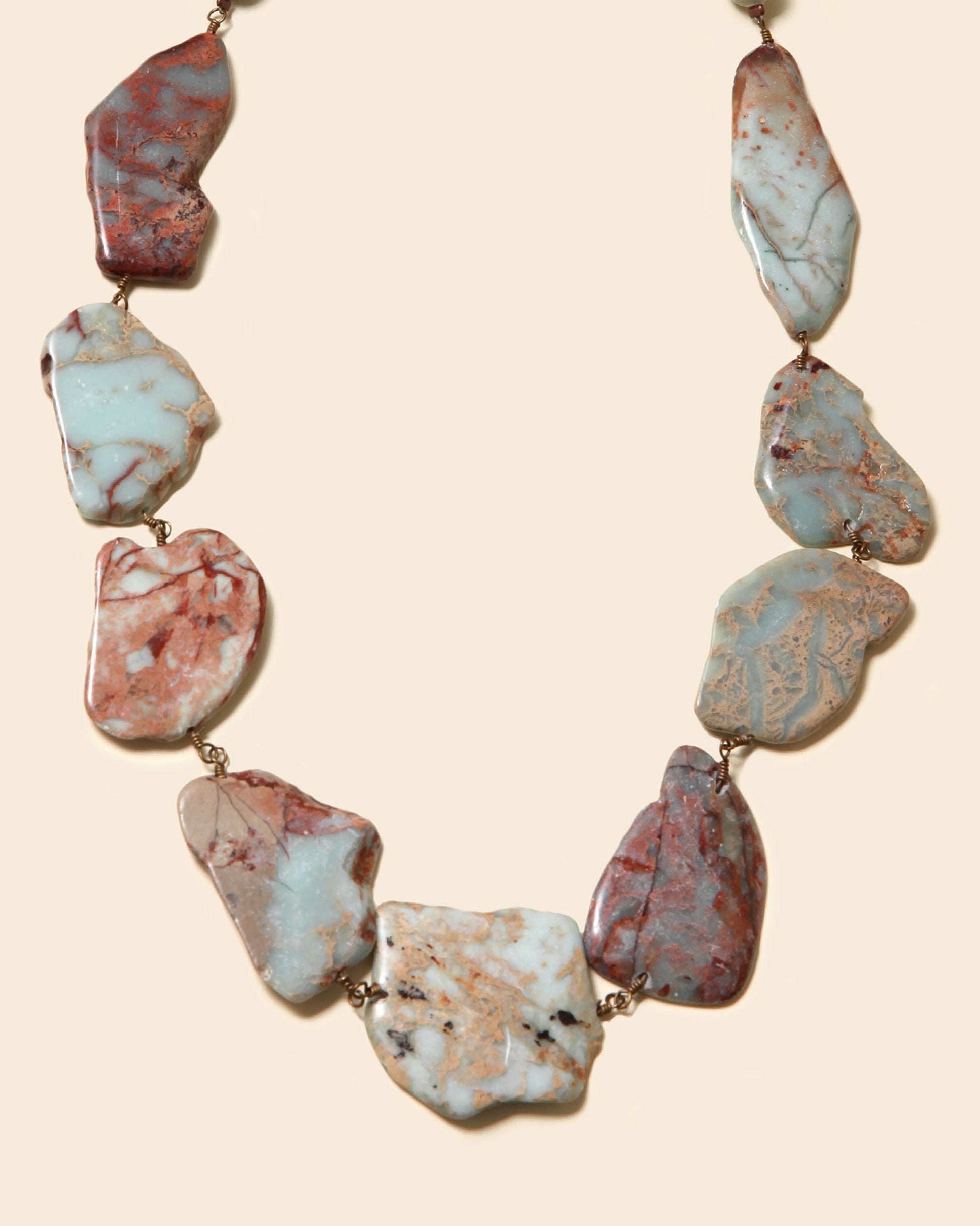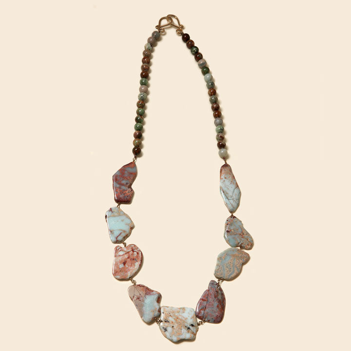 Oversize Peruvian Blue Opal, Austrilian Jasper, Brass wire and Clasp.