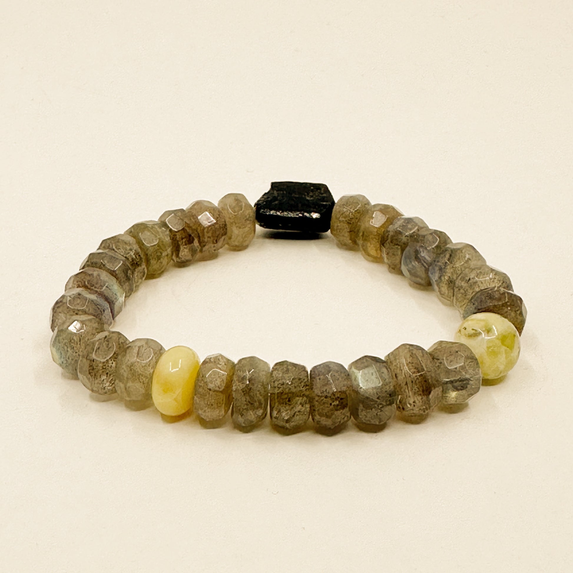 Labradorite Rondelle  Facetted, Natural Black Tourmaline, Yellow Opal.