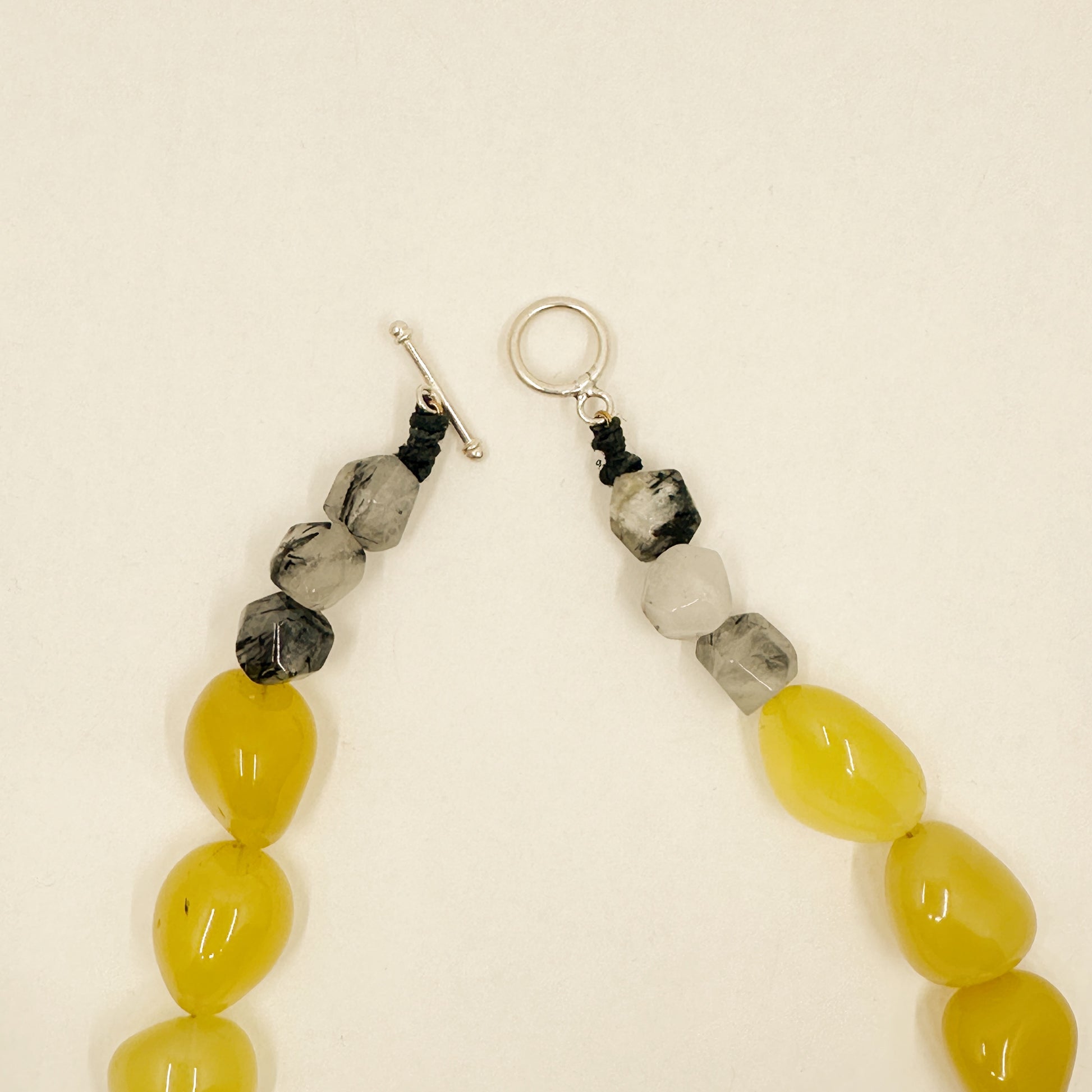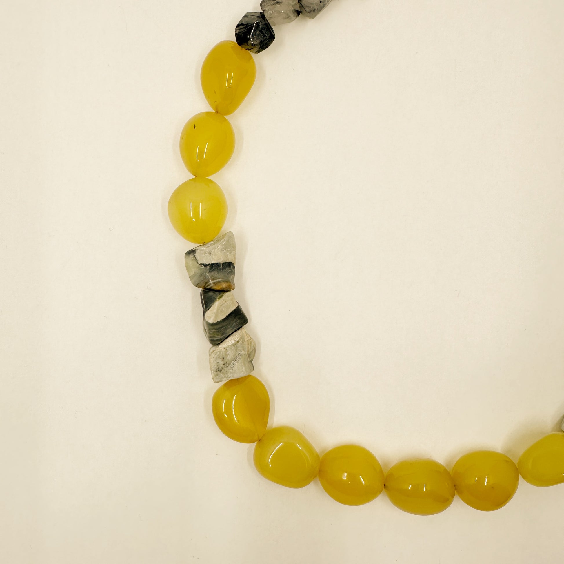Yellow flame Unakite and Raw Agate. Sterling silver toogle clasp.